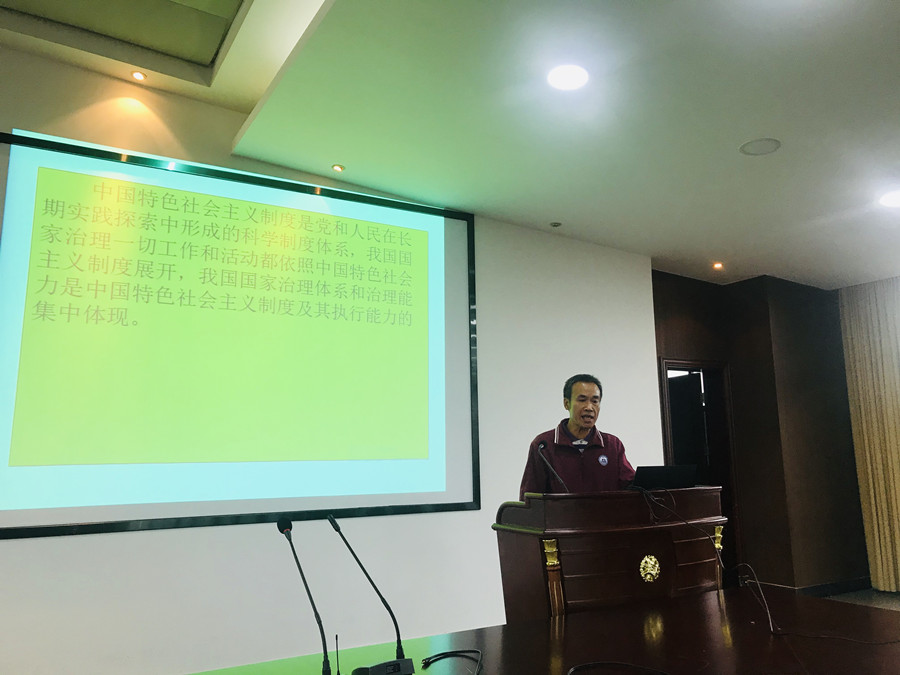 为深入贯彻党的十九届四中全会精神,近日,beat365官网邀请马克思学院陈流芳老师在学术交流中心四楼会议室为全体教职员工开展了“学习贯彻党的十九届四中全会精神”的专题辅导。 我 院党总支书记徐超主持会议。