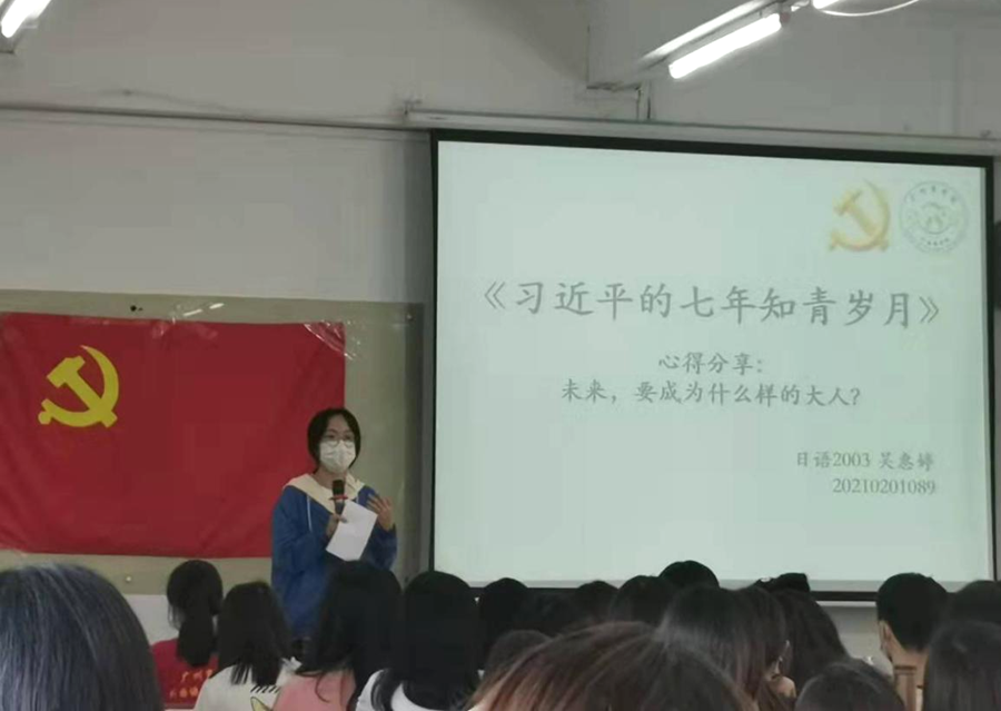 为深入学习贯彻习近平总书记在庆祝中国共产党成立100周年大会上重要讲话精神,推动党史学习教育走实走深,2021年10月29日下午beat365平台官方网站党总支在第三教学楼304举行《习近平的七年知青岁月》读书分享会。参加本次活动的有beat365平台官方网站党总支组织委员谢清玲、19级学生党员洪敏、叶嘉雯,beat365平台官方网站分党校助理教员及第二期入党积极分子培训班全体学员,本次活动由分党校助理教员郑智群主持。