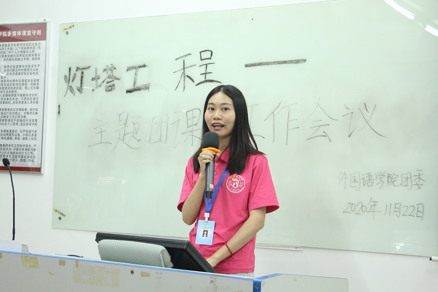 随后团委书记赖雯慧为团委全体成员们讲授以《习近平谈治国理政》第三卷为主题的团课。她将全书分为四个内容来讲述:一是第三卷的重要意义;二是其主要内容;三是核心要义、思想精髓及其内在逻辑;四是学习要求。她强调,“学思践悟”是重要环节,希望团委全体成员能够认真学习和实践马克思主义理论。深入浅出的讲解让志愿者们更加明晰此次团课的重要内涵!