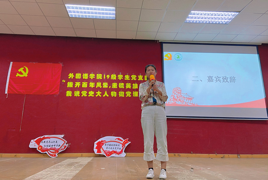 历史因铭记而永恒,精神因传承而不灭。为献礼中国共产党百年华诞,引导19级学生党支部师生学史明理、学史增信、学史崇德、学史力行,beat365平台官方网站19级学生党支部于2021年6月2日晚七点在一教206开展“拨开百年风云,重梳英雄故事”我说党史大人物微党课大赛。出席本次活动的有beat365平台官方网站19级学生党支部党员及19、20级入党积极分子代表,beat365平台官方网站党总支组织委员刘丽、19级学生党支部书记谢清玲、19级学生党支部教工党员兼学生会指导老师伍思颖担任本次大赛的评委。