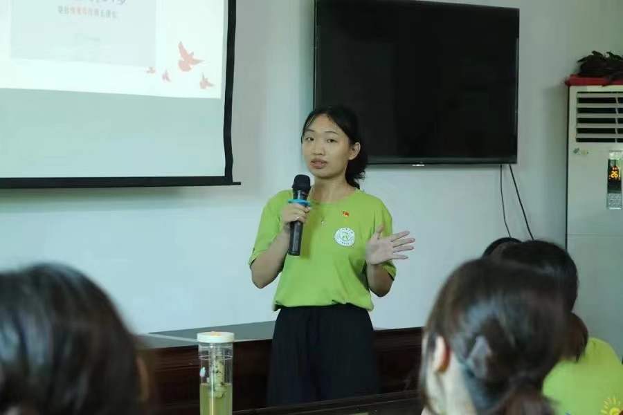 何沛瑾以“感悟榜样力量,坚守下乡初心”为题,带领大家感悟张桂梅同志为教育事业无私奉献的榜样力量。何沛瑾表示,我们不仅要有向榜样看齐的意识,还要有不断向榜样靠拢的行动。她与现场成员进行互动,让实践团成员分享自己参加暑期“三下乡”活动的初心。何沛瑾希望实践团成员们在“三下乡”期间通过支教、社会实践调研以及各项活动有所感悟有所收获,不负韶华。