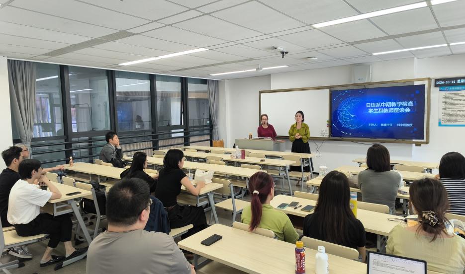 11月7日下午,日语系在第八教学楼208室召开了教学座谈会。本次会议由日语系系主任杨烨老师主持,日语专业负责人刘小珊教授主讲,日语系全体老师参加了会议。