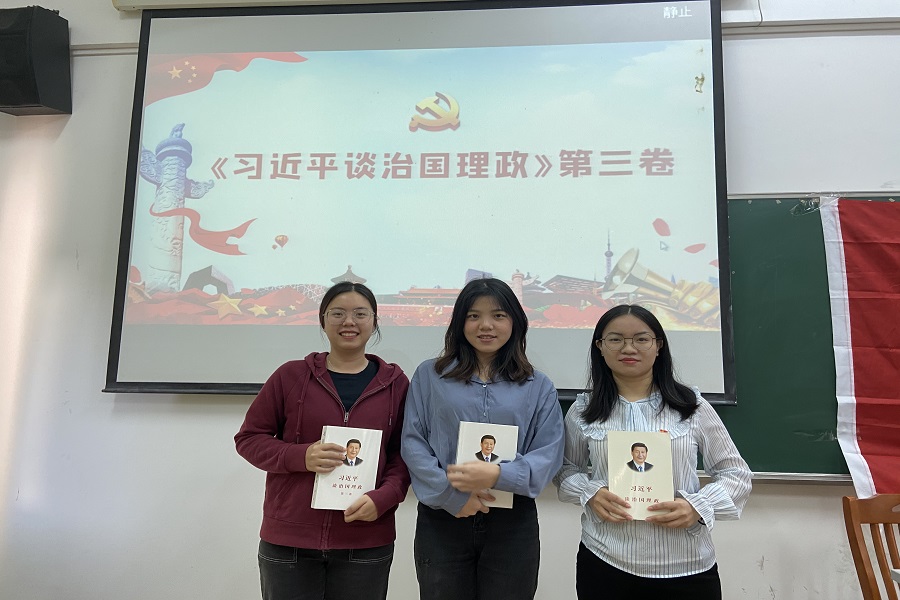 为深入贯彻落实习近平总书记重要讲话精神,根据beat365平台官方网站《关于检查落实学习贯彻习近平总书记重要讲话重要指示精神情况的通知》要求,beat365官网20级学生党支部结合本支部实际,于11月26日组织学习讨论《习近平谈治国理政》第三卷,20级党支部书记蔡文蝶、党员樊丽梅及赖雯慧参加了本次学习会议。
