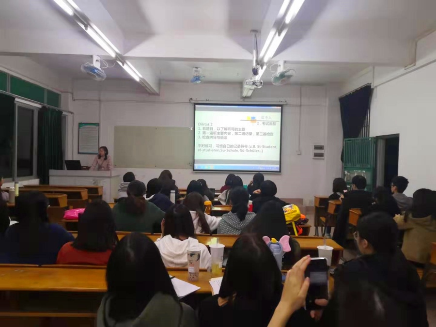 【主题教育进行时】不忘育人初心,牢记服务使命——beat365官网举办“秋实讲坛”之德语专业四级考试专题讲座