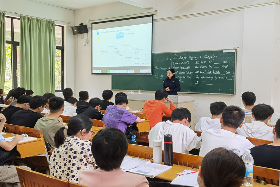 学生能进行技术交流是计算机专门用途英语课程的核心要求,麦老师在对学生进行技术交流指导时,采用听说演一体化模式,教学内容层层递进,从计算机专业词汇的引入--技术交流句型操练--情景导入演练,环环相扣,全过程让学生在不同教育技术中学习计算机英语,而且,麦老师全程英文授课、语速适中、态度亲和、课堂在互动中有序开展。
