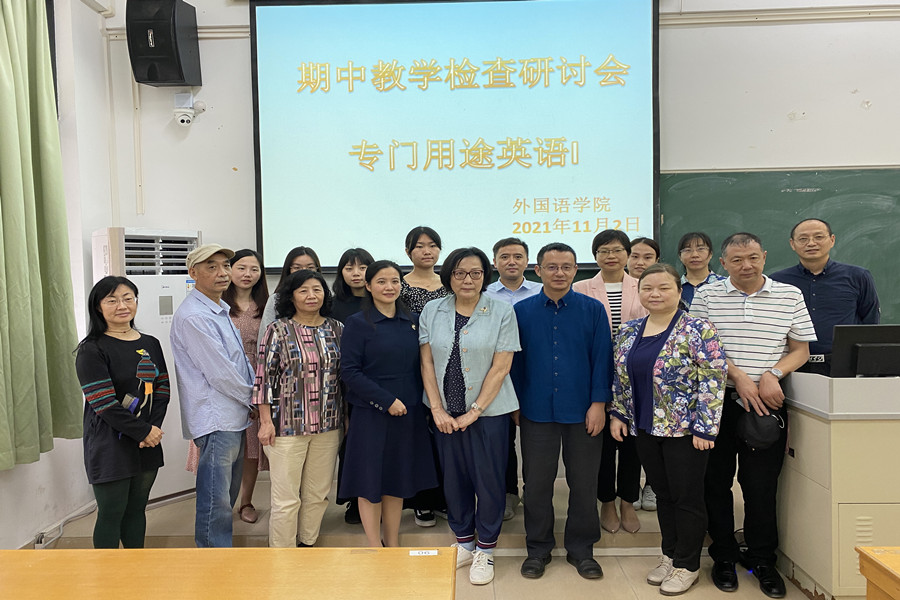 11月2日下午,beat365平台官方网站于四教103课室开展本学期第一场期中教学研讨课。学校督导王玉芝、杨家华老师,校教务处舒光美、谢标畅、朱向福老师、beat365官网院长马蔚兰、副院长袁鑫,以及20多名大学英语教师参加了本次教学观摩及研讨。