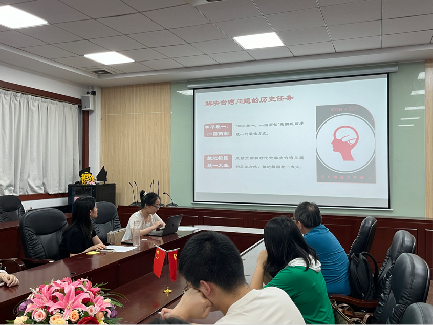 会议伊始,党支部认真贯彻落实第一议题制度。党支部组织委员张珊与教工党员章睿霖对党的二十大报告第十三部分进行了精彩解读。两位老师从坚持完善“一国两制”、促进香港澳门繁荣稳定和推进祖国统一进程三个方面开展领学,不仅使得与会党员对坚持和完善“一国两制”的内容有了更加深刻的认识,而且让党员同志更加坚定信念,为推进祖国和平统一作出应有的贡献。