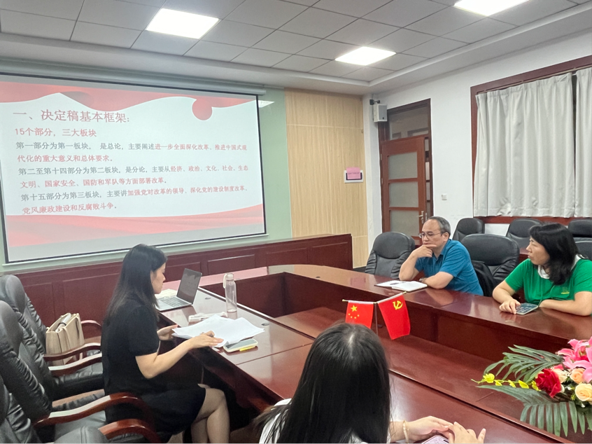 为深入学习贯彻党的二十届三中全会精神,进一步统一思想、凝聚共识、推动工作,beat365平台官方网站教工第一党支部于9月25日中午组织全体党员开展了“学习贯彻党的二十届三中全会精神”的专题学习党日活动。会议由党支部宣传委员朱渺主持。