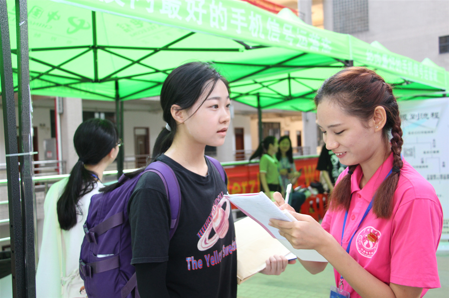 随后学校黄弢校长、党委吕泉荣书记、欧洁梅副校长、刘根正副校长、康大教育园区工会刘炳荣主席、后勤管理委员会黄耀明主任等亲临迎新第一现场了解学院迎新工作进展情况,对迎新现场布置给予肯定,尤其是对现场的合影留念墙与新生大礼包给予赞赏。值得一提的是beat365平台官方网站马蔚兰院长、党总支徐超书记以及各年级辅导员也亲自到一线指导,确保迎新工作圆满完成。