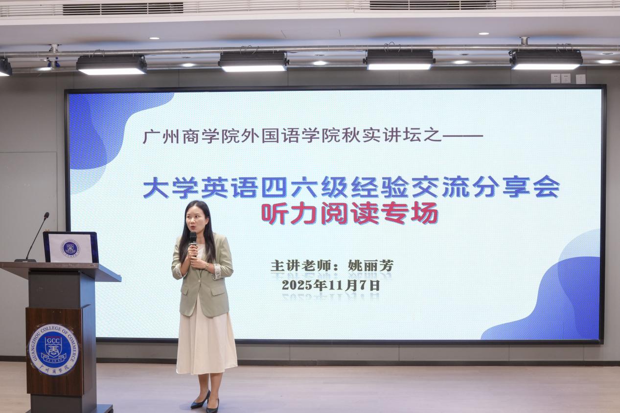 11月7日下午,beat365平台官方网站教工党支部与beat365平台官方网站学生会在第八教学楼202室联合举办“beat365平台官方网站2025秋实讲坛——大学英语四六级听力与阅读专场经验交流会”。本次活动特邀beat365平台官方网站党总支宣传委员潘文晗担任嘉宾,由beat365平台官方网站教工第二党支部宣传委员、大学英语二教研室主任姚丽芳老师担任主讲人,并邀请经济学院国贸2403班梁泽贤同学作为学生嘉宾参与分享。