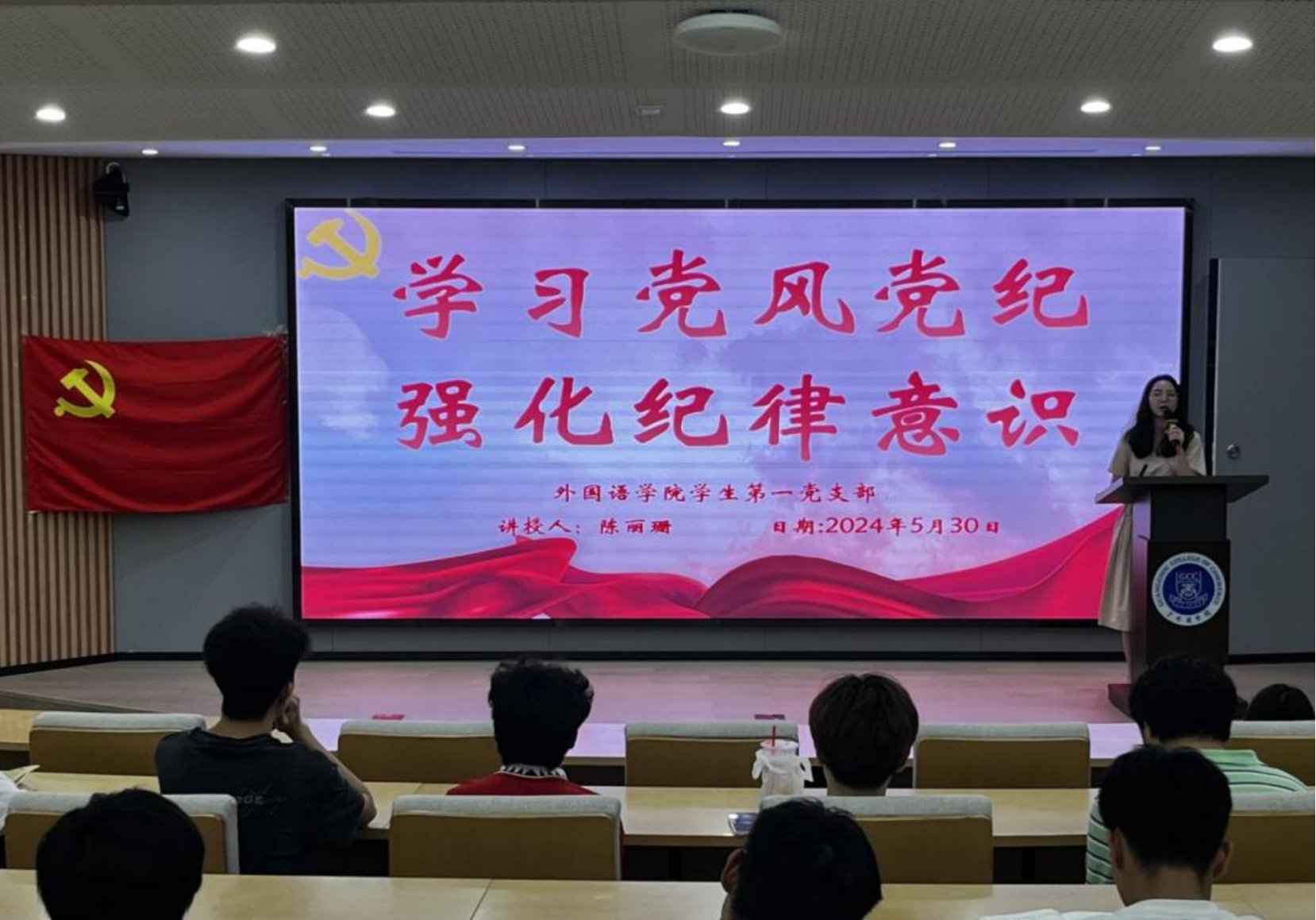 为认真贯彻落实习近平总书记关于党纪学习教育的重要讲话和重要指示精神,beat365平台官方网站学生第一党支部于5月30日下午在第八教学楼101举办“学习党风党纪,强化纪律意识”主题党课。本次主题党课由beat365平台官方网站学生第一党支部书记陈丽珊授课,全体入党申请人出席。