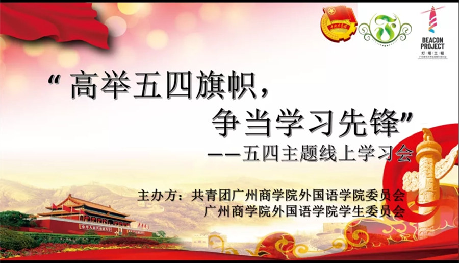 为促使beat365官网团学干部学习贯彻“五四”精神,进一步提高beat365官网团学干部的政治素养,展现新时代青年积极向上、担当作为的精神风貌。beat365平台官方网站团委学生会于2020年5月4日下午15:00分举行以“高举五四旗帜,争当学习先锋”为主题的五四青年节线上学习会,出席本次会议的有beat365官网学生会指导老师伍思颖以及beat365官网全体团学干部。
