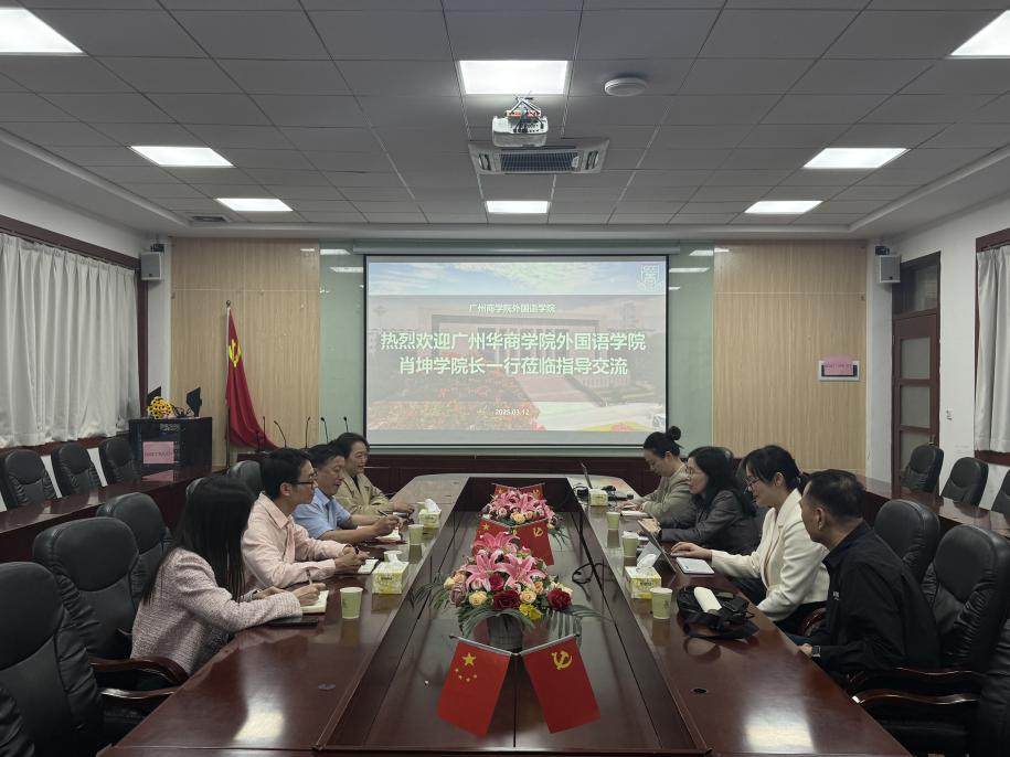 3月12日下午,由广州华商学院beat365平台官方网站肖坤学院长带队一行莅临beat365平台官方网站进行教学评估、课程建设、专业建设、师资队伍建设、学科建设等工作调研交流,交流会在第二行政楼308举行,beat365平台官方网站院长郭遂红、学院党总支书记徐超、外语学科学术带头人莫爱屏教授、院长助理张雅敏和办公室主任高媛热情招待了来访团队,会议由郭遂红院长主持。
