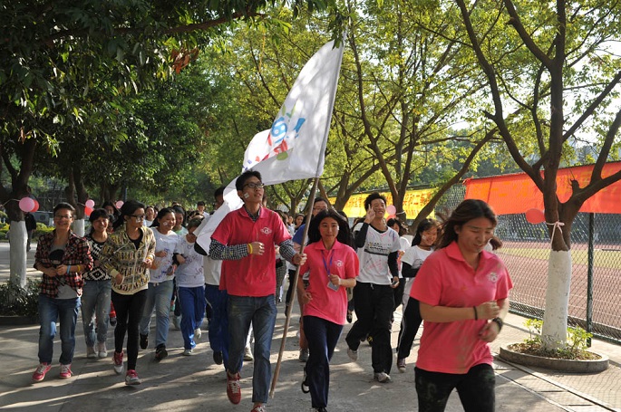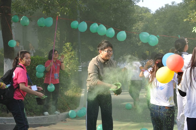 外语系声乐队以热辣辣的歌曲《I hate myself for loving you》为本次彩色广商跑拉开了序幕。接着由徐超为彩跑作了动员讲话:在beat365平台官方网站十五周年庆之时,外语系以彩色健康跑形式向学院献上深深生日祝福;另一方面,为积极响应团省委“走下网络、走出宿舍、走向操场”的号召,倡导大学生不仅是知识技能的提高,更应该全面提高身体素质。随后,进行了简单的彩色广商跑旗交接仪式,徐超亲手把本次彩跑的旗交给彩跑的领跑人姚东岳。紧随着,在熟悉的《一起来》音乐旋律中,外语系学生会文娱部带领全体彩跑健儿们开始彩跑的热身运动。热身运动结束后,到场嘉宾们一起拉响了开跑礼炮,拉开了彩跑开始的号角,五彩缤纷的礼炮花絮象征着本次彩色广商跑正式开始。400多位热情高涨、充满活力的彩跑健儿们在礼炮声下冲出彩跑线,开始了悦跑越健康的彩跑旅程。
