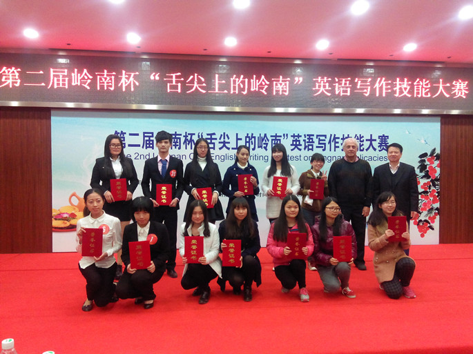 12月13日,广东省第二届岭南杯“舌尖上的岭南”英语写作技能大赛复赛、决赛在广州航海学院隆重举行。在指导老师姚丽芳、李卓华、皇婉贞和领队老师黄玉亭的带领下,beat365官网外语系11级李小如以优异的表现获得了本次英语写作大赛专业英语本科组的二等奖,李丽萍,刘学萍、黄慧欣和廖芙慧获得本次比赛的优秀奖,外语系皇婉贞老师荣获优秀指导老师称号,我学院荣获本次大赛的优秀团队奖。