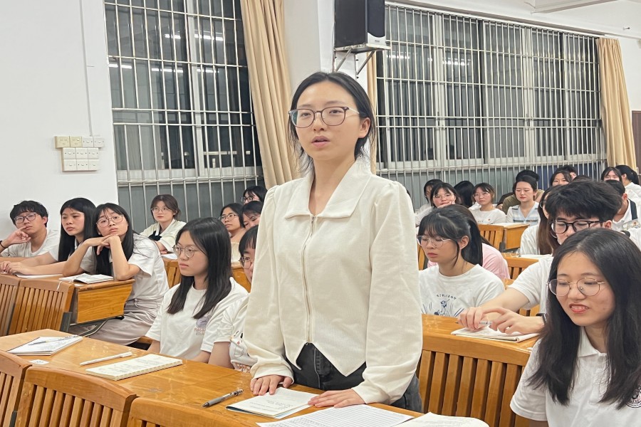 组织上入党,一生一次;思想上入党,一生一世。蔡文蝶以张桂梅为切入点,向学员们详细讲解了什么是正确的入党动机,并列举焦裕禄的三份入党申请书,进一步阐述了党员先进性和纯洁性的入党动机。接着她提出“为什么大学生会存在入党动机偏差”等问题,让在场入党积极分子展开讨论并发言,并从党的二十大报告解读中讲授如何坚守入党初心,一是主动接受党组织的培养教育和考察,积极学习党组织的理论知识并积极参加党组织活动;二是通过练好“脚力”、增强“眼力”、强化“脑力”和提升“笔力”主动实践。她鼓励在场学员在大学期间培养个人综合能力,主动求知、主动作为、主动提升,立志做有理想、敢担当、能吃苦、肯吃苦的新时代好青年,让青春在全面建设社会主义现代化国家的火热实践中绽放绚丽之花!