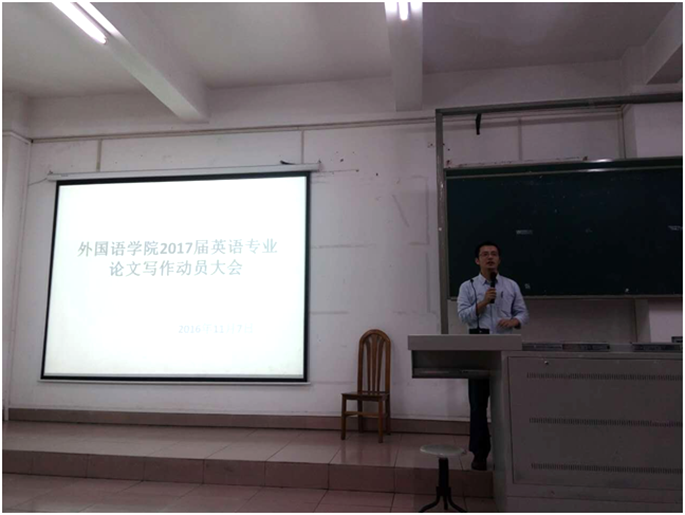 beat365平台官方网站于2016年11月7、8、9日分别举行2017届英语、日语和德语专业学生毕业论文动员大会,主管教学副院长袁鑫和各专业系主任参加动员大会。