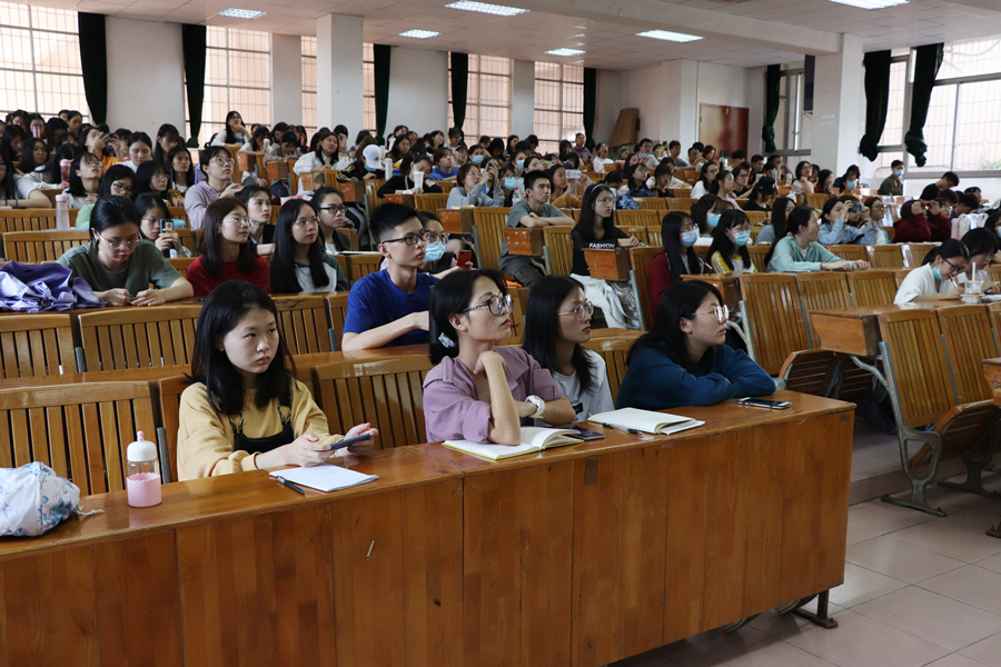 作为主讲教师,张蕾详细地介绍了专八考试的基本信息、考试试题的构成以及考试备考的相关内容。她认为考试主要是为了测试学生真实的语言水平,所以同学们应该从现在开始严格要求自己,提升听、读、写、译四个方面的能力。随后,张蕾着重介绍了有关考试备考的内容,她要求同学们在备考时做到以下几点:一是做好时间规划,积极行动起来;二是坚持每天阅读英文原著的习惯;三是及时的进行总结反思并纠正问题。此外,张蕾还为同学们推荐了合适的学习资料。