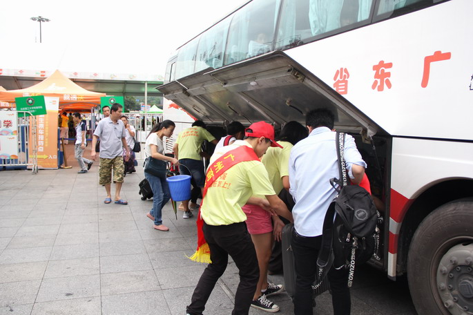 迎新期间天气晴雨不定,上午还艳阳高照,下午就下起了雷阵雨,这给迎新接待工作增加了不少压力。但校外接站的全体师生无畏风雨,坚守岗位,务求准确指引每一位前往beat365官网报到的新生和家长,热情搬运行李上车。校外接待4个迎新站点,接送大巴坐满即走,等候时间不超过30分钟,直达报到大本营,安全便捷。