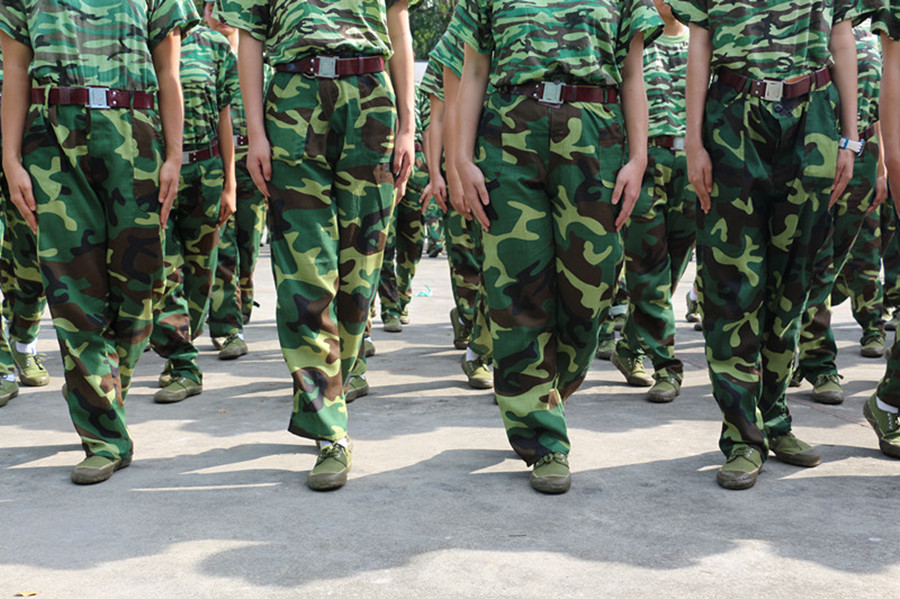 漫长的军姿站立,踢不完的齐步正步,挨不完的“柔声细语”,使个个脆弱的你们慢慢变的坚强,严肃的训练场使每个同学英姿飒爽,但绝没有矫揉造作,有的是勇敢,坚强。这就是军训。
