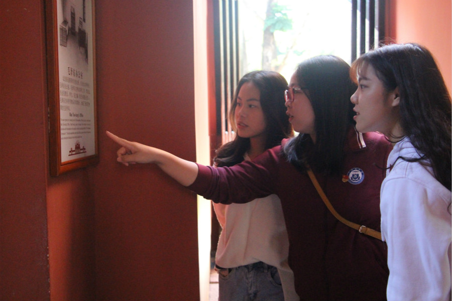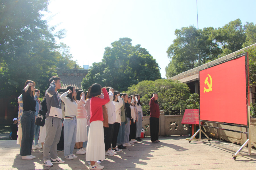 全体学生党员准时抵达农民运动讲习所旧址纪念馆。从旧址建筑观赏开始参观之旅,一方面,学生党员分别经过旧址教务部、庶务部和值星室、图书室、所长办公室、课堂和军事训练部和教员及学员宿舍。古迹的建筑、陈旧的展览品和详细的文字说明为学生党员参观学习提供了直观的学习资源;另一方面,随着讲解员深情并茂的解说,先烈的故事和革命的事迹、无一不展示着共产党人坚定不移的革命信仰和砥砺前行的磅礴气势,让党员们深刻感悟到了共产党人的初心和使命,纯洁和坚定。参观结束后,在黄玉亭带领下全体党员面向党旗,重温入党誓词,庄严的宣誓下,声音响亮,铮铮誓言,坚定不移,胸前党徽光芒的愈发耀眼。参观过后,党员以党小组为单位,在农讲所旧址里开展了学习研讨活动,谈心得体会、学党的十九届四中全会精神。途中,还开展了一节特殊意思的党课。主讲人是同样来农讲所参观学习的老党员同志,学生党员集中围站学习,听老党员讲革命的故事、讲祖国成就。讲人生阅历。学习交流氛围积极热烈。