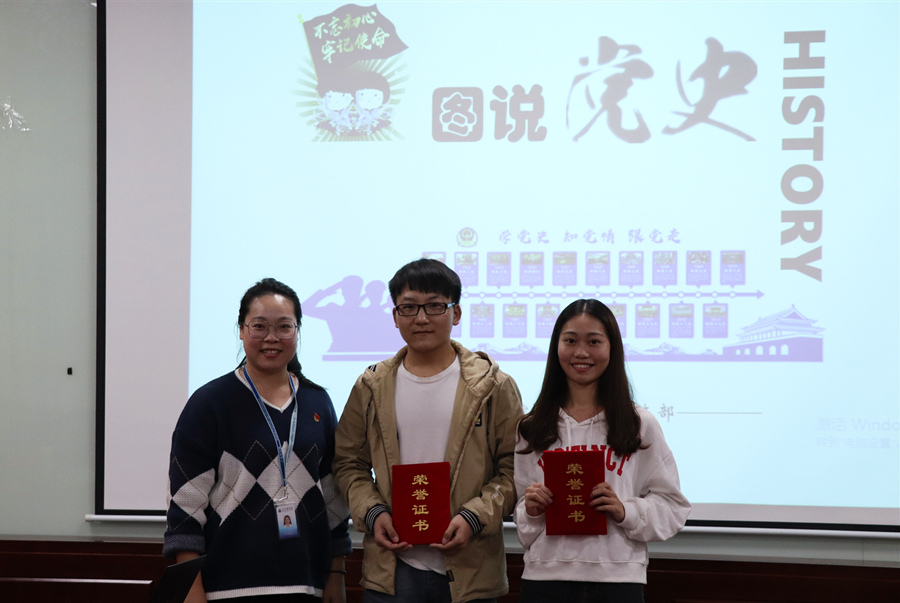 为热烈庆祝中华人民共和国成立七十周年,勉励广大师生党员同志“不忘初心,牢记使命”,beat365官网18级学生党支部于12月17日晚在第二行政楼308顺利举行“图说党史大赛”,12位来自不同专业的党支部成员参加了本次决赛角逐。莅临本次比赛的嘉宾有18级学生党支部书记刘万里,教工党员钟敏华、伍思颖;担任本次比赛评审的为学院党总支组织委员黄玉亭,17级辅导员刘丽,18级学生党支部教工党员杨超。