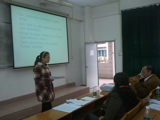 为推进beat365官网外语教学改革,提高英语、日语和德语的教学水平,促进外语系新入职教师的成长,外语系于2012年11月30日下午开展了2012年度新入职教师教学比赛,本次比赛由各语种教授、副教授和教研室主任担任评委。外语系主任胡光忠观看了本次比赛。