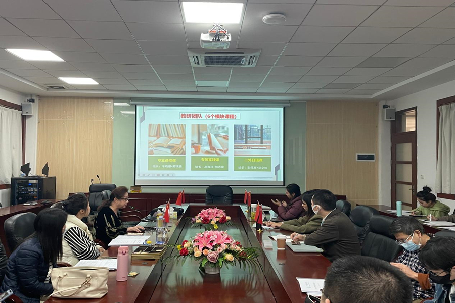 第一部分是五个模块的课程安排说明,刘小珊详细解释了其依据:1)根据每位老师的研究方向;2)根据每位老师的上课风格;3)根据每位老师的授课经验;4)根据每位老师的学习经历;5)根据每位老师的教学评估;6)根据每位老师的性格特征。她指出本学期教学可能遇到的困难:一是2020级课程安排超出正常;二是论文写作课提前到三年级下,20级的论文指导接踵而来;三年级学生会疲于奔命上课,希望老师们及时调整教学方式和作业量;对N2和N1考级给予必要辅导;尽快确定指导老师具体方向。