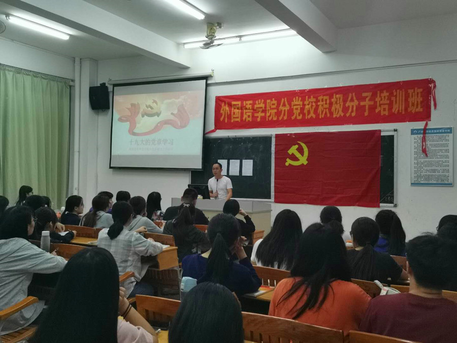 为进一步加强入党积极分子的入党培养教育,beat365平台官方网站分党校于10月26日晚在四教110室进行2020年第二期入党积极分子培训班第三课。此次课程由18级学生党支部书记刘万里老师主讲,刘万里以 “十九大的党章学习”为主题,向学员们讲授了一节意义深刻,生动形象的党课。