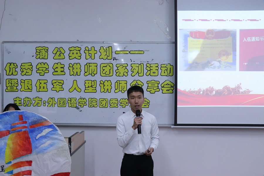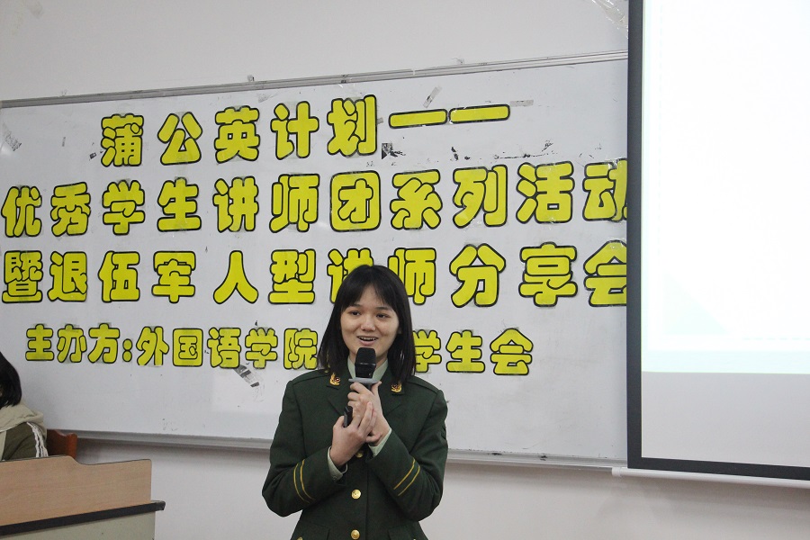 铮铮铁骨战沙场,气宇轩昂斗志扬。为弘扬军人的优秀精神,增强beat365平台官方网站学子的责任感和使命感,beat365平台官方网站团委学生会于12月17日19:00在三教105开展beat365平台官方网站蒲公英计划——优秀学生讲师团系列活动暨退伍军人型讲师分享会。出席本次分享会的嘉宾有beat365平台官方网站党总支徐超书记、beat365平台官方网站18级辅导员李嘉欣、19级辅导员谢清玲以及20级辅导员蔡文蝶。