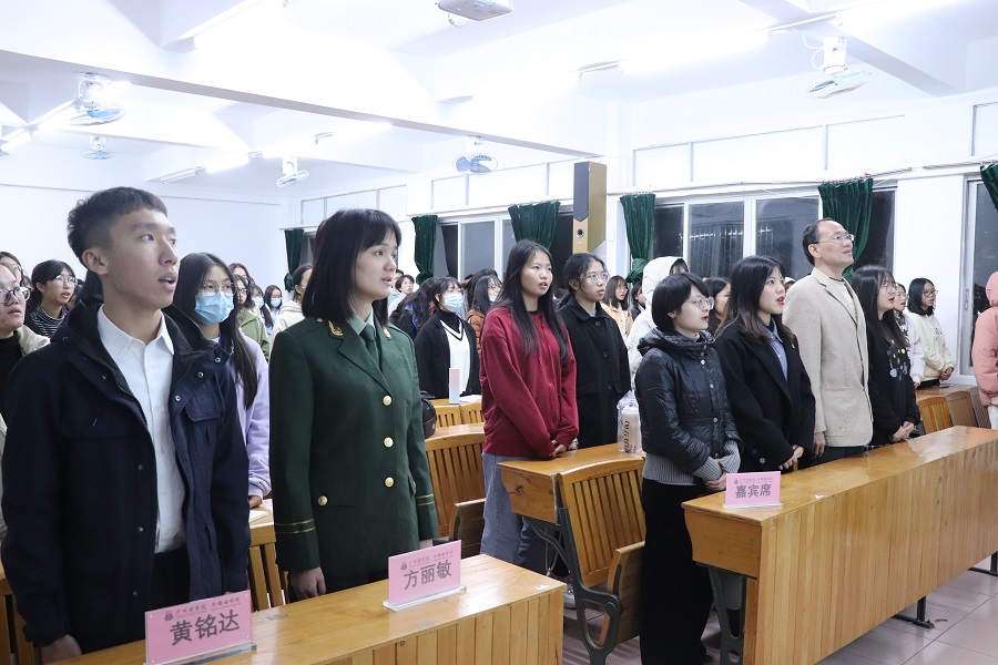 分享会伊始,全体同学肃立奏唱团歌,在热烈激昂的歌声中拉开分享会序幕。