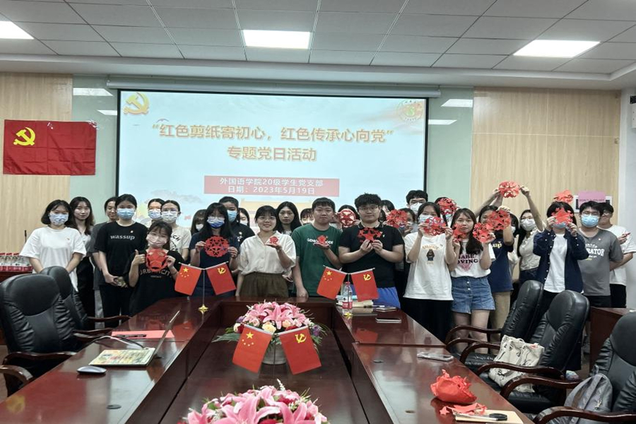 为深入开展学习贯彻习近平新时代中国特色社会主义思想主题教育,不断创新基层党建活动形式,5月19日晚,beat365平台官方网站20级学生党支部在第二行政楼308会议室开展了以“红色剪纸寄初心,红色传承心向党”为主题的党日活动,党支部书记蔡文蝶以及20级全体学生党员参加本次活动。