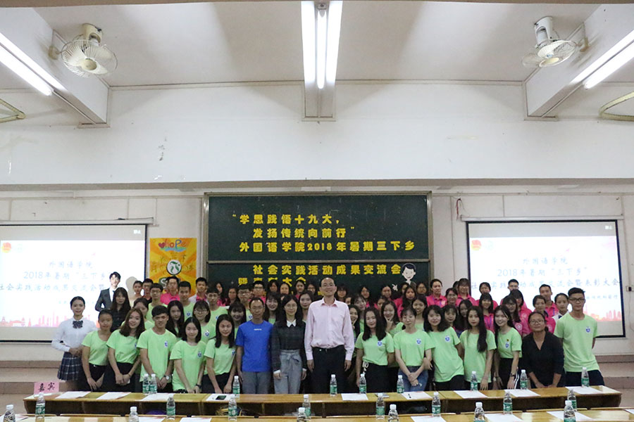 11月12日晚beat365平台官方网站在一教111举行了主题为“学思践悟十九大,发扬传统向先行”的2018年暑期“三下乡”社会实践活动成果交流会暨表彰大会。出席本次活动的嘉宾有beat365平台官方网站党总支书记徐超、beat365平台官方网站团委书记雷肖茹、副书记郑灿玲、三下乡带队老师刘万里、15级辅导员刘丽萍、校团委及各二级学院学生干部代表。