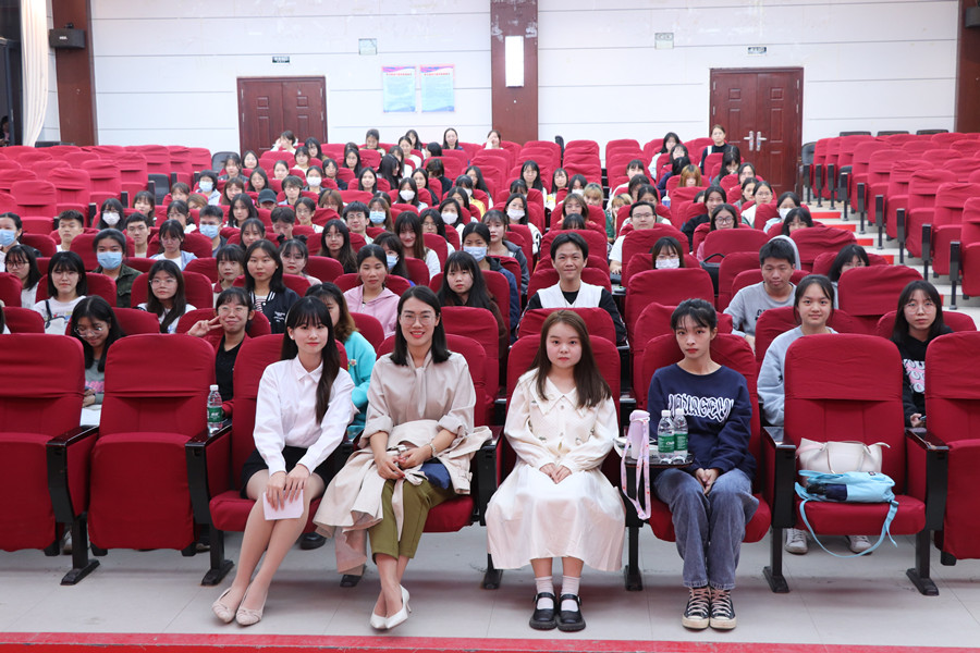 李海燕老师(中间)与学生嘉宾及现场工作人员的合照