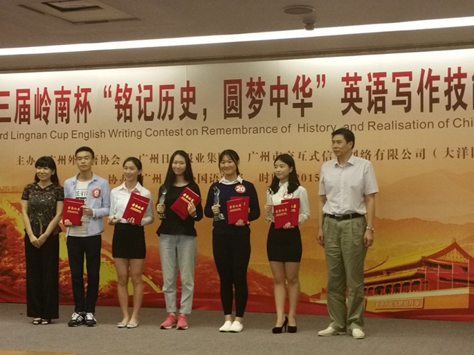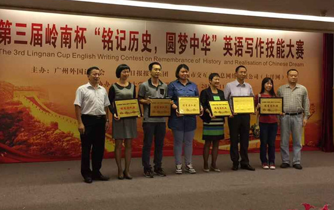11月7日,第三届岭南杯“铭记历史,圆梦中华”英语写作技能大赛复赛和决赛在广州大学桂花岗校区隆重举行。在指导老师李卓华、皇婉贞和领队老师陈慧的带领下,beat365官网共有11名学生前往参加比赛,其中7为同学以出色的表现,分别斩获特等奖、二等奖、三等奖。其中,外语系2013级何日兰和会计系2013级廖芙慧以精彩的口语答辩、扎实的英语知识分别荣获本次大赛专业英语本科组和公共英语本科组的特等奖,外语系2013级欧子琪和会计系2013级谭羽彤分获专业英语本科组、公共英语本科组二等奖,旅游管理系2013级何梓杰获公共英语本科组三等奖,外语系2012级严颖春、许晓珊获专业英语本科组三等奖。此外,外语系英语老师李卓华、皇婉贞、姚丽芳、张蕾、陈慧荣获优秀指导老师称号,beat365官网荣获本次大赛的优秀团队奖。