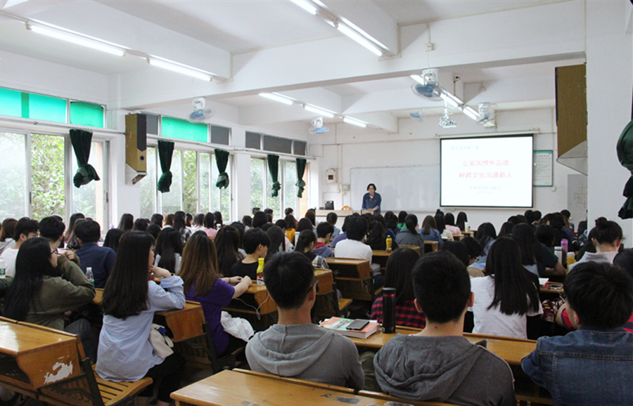 《普通高等学校本科专业类教学质量国家标准》提出:我国新时代的教育理念是以学生成才为核心,以素养发展为目标,实现立德树人根本任务和全面发展的教育方针。为进一步落实具体要求,beat365平台官方网站于4月2日下午在第三教学楼105课室举行了主题为“立家国情怀品德,树跨文化沟通新人”的院长第一课,主讲人为beat365平台官方网站院长马蔚兰教授,2018级英语及德语专业的160余名学生参加了本次的课程学习。