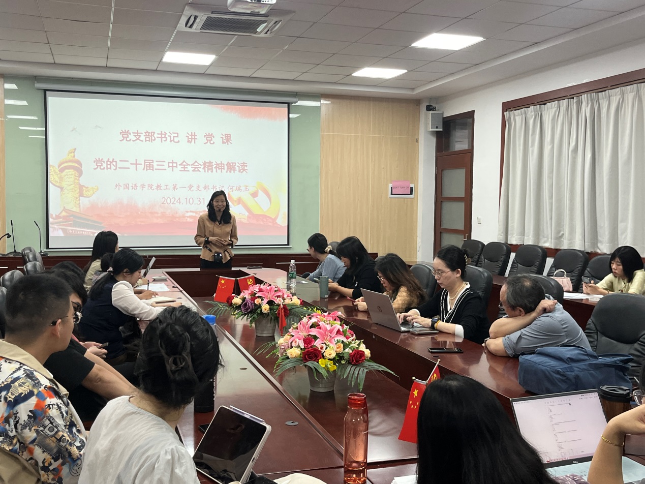 为深入学习宣传贯彻党的二十届三中全会精神,深刻领会和把握全面深化改革的重大成就、重大意义以及指导思想,10月31日,beat365平台官方网站教工第一党支部举行了以“党的二十届三中全会精神解读”为主题的书记讲党课活动。本次党课由党支部书记何瑞玉老师主讲。
