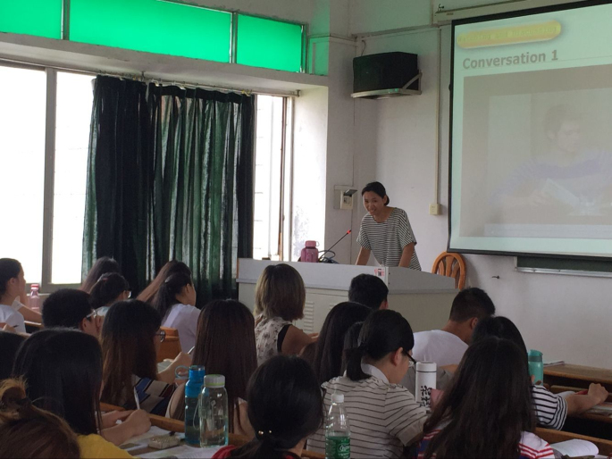2015级信管B班的大学英语老师张芳林和同学们为我们呈现了两节视听说课—Breaking News。课堂上,张老师情绪饱满、讲授自如,且发音清晰,语言生动。张老师在教学设计中采用头脑风暴、反复听、精听、叙述等各种形式,让学生从听中体验英语学习的乐趣,让一年级的大学生养成良好的听力习惯,并巧妙地引导学生感受英语语音语调的美妙,对学生进行英语听说的熏陶与培养,课堂气氛活跃,教学效果良好。