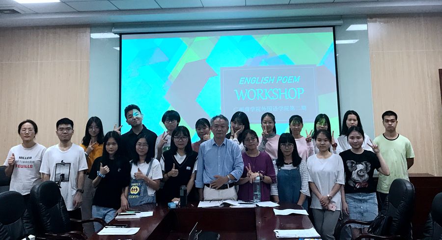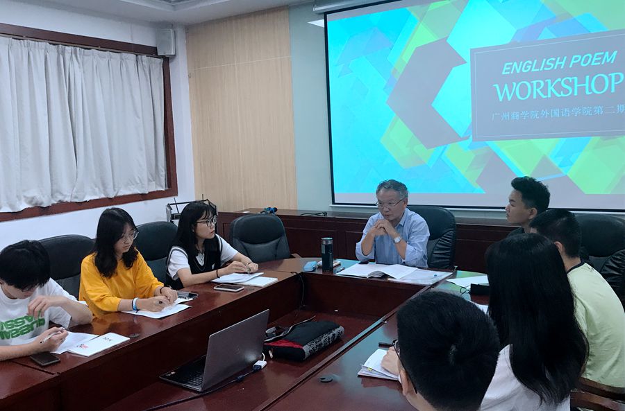 上学年beat365官网面向2017、2018级举办了第一期“英诗朗诵工作坊”,在学生中的反响很好,特在本学期举办第二期工作坊,共有24位2019、2020级英语专业的同学报名参加。王教授为复旦大学比较文学博士,广东外语外贸大学外国文学文化研究中心研究员,博士生导师,也beat365平台官方网站英语系专业负责人,文学造诣深厚。本工作坊的宗旨是寓教于乐,在“玩耍”中学习英国文学的王冠——英诗。本工作坊从11月-12月共举行了4次活动,每次活动会安排4首要朗诵的诗歌,先由王教授讲解该次活动的诗歌的大意、背景等知识,然后安排同学们朗诵,再对诗歌的特点、意境等进行讨论。