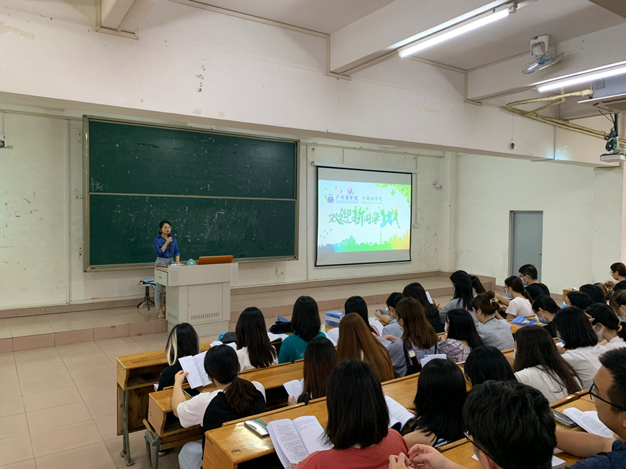 随后,19级学生党支部书记、德语专插本辅导员谢清玲为全体专插本新生讲解学生手册,她强调了在校期间的注意事项,并针对疫情防控期间的特殊情况要求同学们严格遵守校园管理的各项制度,共同助力疫情防控工作。