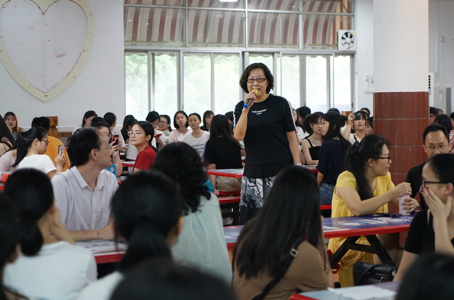 毕业聚餐以自助的形式进行,师生一同落座。马蔚兰院长在用餐前致辞。她寄语:一日外语人,一世外语情。同时她希望同学们在进入社会以后,要能够有效利用自己在大学所学的知识,并祝愿大家前程似锦。徐超书记也向毕业生们表达了他的祝福。他率先举起酒杯,邀请众人共饮,回应他的是毕业生们一声声深情的“谢谢!”。