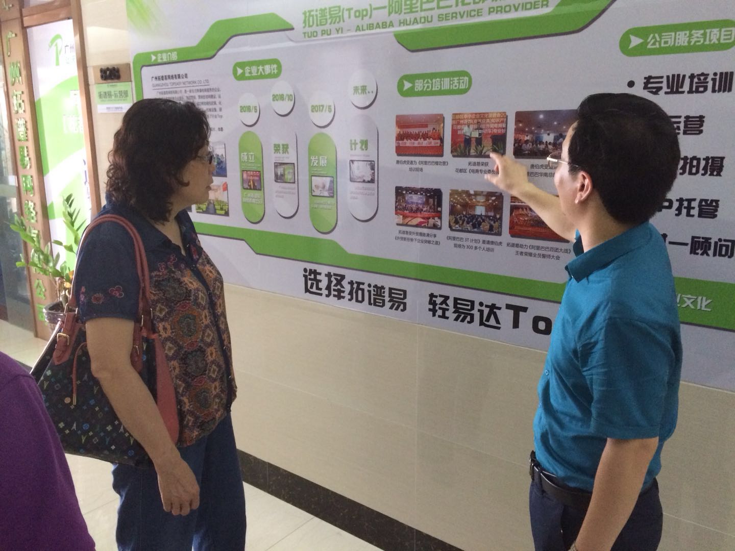为进一步培养高素质应用型商务英语人才、了解外贸行业最新动态,探索外贸人才协同培养模式,2018年5月2日下午3点,beat365平台官方网站院长马蔚兰,副院长袁鑫、郭航一行到广州拓谱易网络有限公司进行实地考察,并与广州九鸣教育科技有限公司、阿里巴巴(中国)网络技术有限公司等企业洽谈校企合作事宜。广州拓谱易网络有限公司董事长邹云虎、广州九鸣教育科技有限公司洪斌总监、马倩倩经理热情接待了马蔚兰一行。