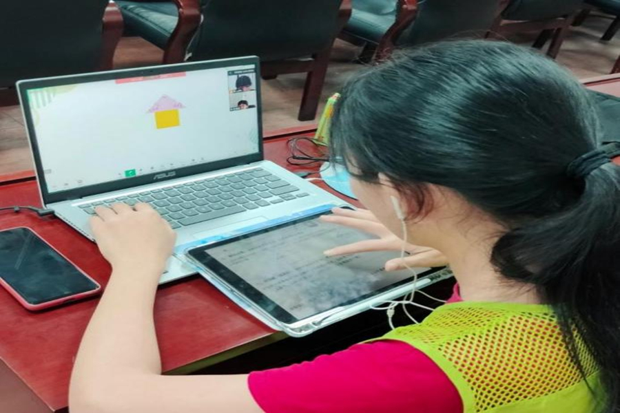 活动开展前,各科小老师们检查设备,准备教材。莫怡小老师首先开展语文辅导,在课程期间,小朋友积极配合上课节奏,能够认真活跃与老师进行互动。在阅读理解环节,小老师带领小朋友对重点字句进行赏析,并进行一定的题型训练,从听说读写四个方面来培养小朋友的语文语感和兴趣。接着数学小老师刘丽丹为小朋友讲述关于三角形的知识。在讲解过程中,刘丽丹小老师思路清晰,耐心地启发和引导小朋友,与小朋友一起探索几何图形的奥妙。在老师的帮助下,小朋友不仅顺利地解开数学难题,并且对几何部分有了一个更全面的了解。最后的英语线上辅导课由邹玉欢小老师进行授课。小老师循循善诱的语言,让小朋友不知不觉融入外语课堂。以播放字母歌的方式来激发小朋友的语言兴趣。