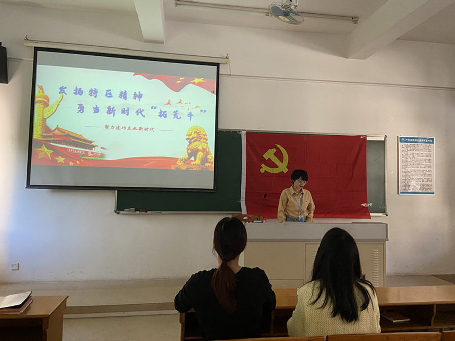 为深入学习、准确把握习近平总书记出席深圳经济特区建立40周年庆祝大会和视察广东重要讲话、重要指示精神的重大意义和丰富内涵,beat365平台官方网站19级学生党支部于11月26日在第四教学楼302开展以《发扬特区精神,勇当“拓荒牛”》的学习研讨会。此次学习活动由19级学生党支部书记谢清玲主讲,19级学生党支部全体党员参与学习。