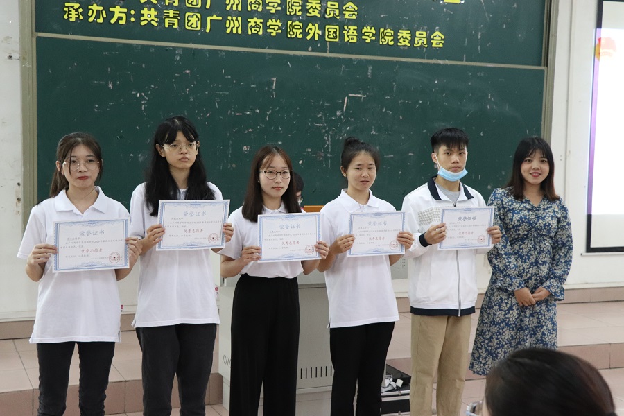 接着,团委书记赖雯慧宣读《关于共青团beat365平台官方网站委员会表彰2020年暑期“三下乡”社会实践活动优秀志愿者的表彰决定》。徐超书记、赖雯慧老师、伍思颖老师和蔡文蝶老师对优秀个人进行颁奖,获奖者有: