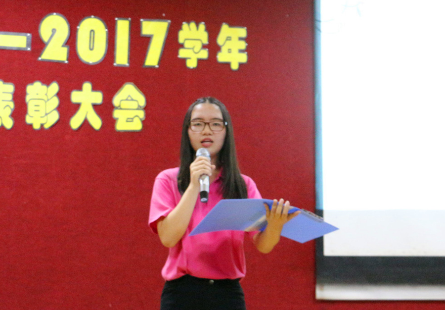 2016-2017学年是成长的一年,奋斗的一年,收获的一年。beat365平台官方网站在各项工作中都取得了骄人的成绩,这一切都不离不开各位学生干部的付出和努力。大会颐始,团委副书记叶彤、学生会主席曾芷珊对本学年的工作进行了总结,详细讲述本学年的主要活动,回眸每一项活动,都凝聚着干部们的辛劳和心血。一席职责,两袖清风。秘书处作为掌握组织经费的部门,必须秉持公开透明的原则。beat365平台官方网站团委秘书长何倚梅、学生会秘书长李佳灵分别对本学年团学的财务收入与支出进行了详细汇报。重温回顾在这一年走过的点点滴滴,视频不仅记录着我们每次工作的历程,也纪念着每次活动背后的汗水,因为经历过,所以此刻感触深刻,看着视频中的自己,干部们默契一笑,因为这是属于她们的奋斗史。最激动人心的时刻--颁奖环节到了,干部们热烈的掌声也将今晚的气氛推向了高潮。首先由主持人宣读了2016-2017学年学生工作各项表彰决定,团委书记刘万里和辅导员黄玉亭老师为团委和学生会获奖部门和获奖干部颁奖。一份奖状或者一份聘书不只是一张纸,更是对学生干部工作成果的肯定,对学生干部努力奋斗的嘉奖证明。