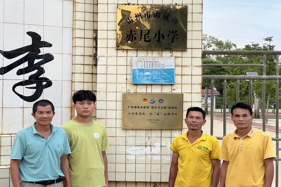在赤尾村村干部的见证下,阳光展翅实践团学生代表曹国权为广东青年大学生“百千万工程”突击队beat365平台官方网站·实“荔”出圈项目挂牌。牌匾挂在赤尾小学门口,标志着阳光展翅实践团实“荔”出圈项目取得了显著成效。