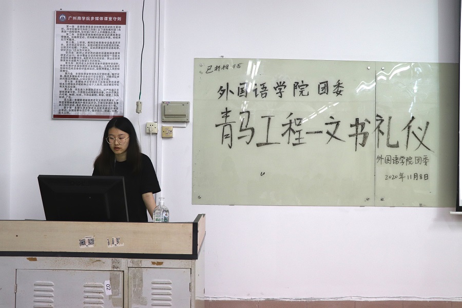 在主讲人张君莉精彩的讲解后,由beat365平台官方网站团委秘书长郭懿上台发言。首先她对固定志愿者的加入表示热烈欢迎,并强调文书礼仪的重要性;其次,她希望大家能够做到学习与工作并重,呈现出一个外院学子应有的优秀面貌。