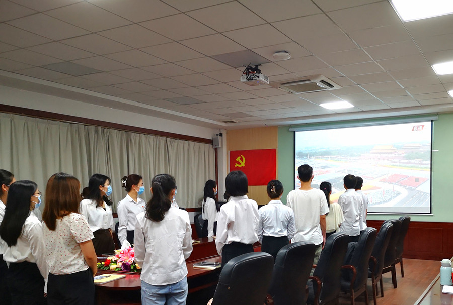 为热烈庆祝中国共产党成立100周年,7月1日,beat365平台官方网站组织师生党员在二政308会议室观看庆祝中国共产党成立100周年大会直播。党总支全体师生党员和入党积极分子参加了本次活动。