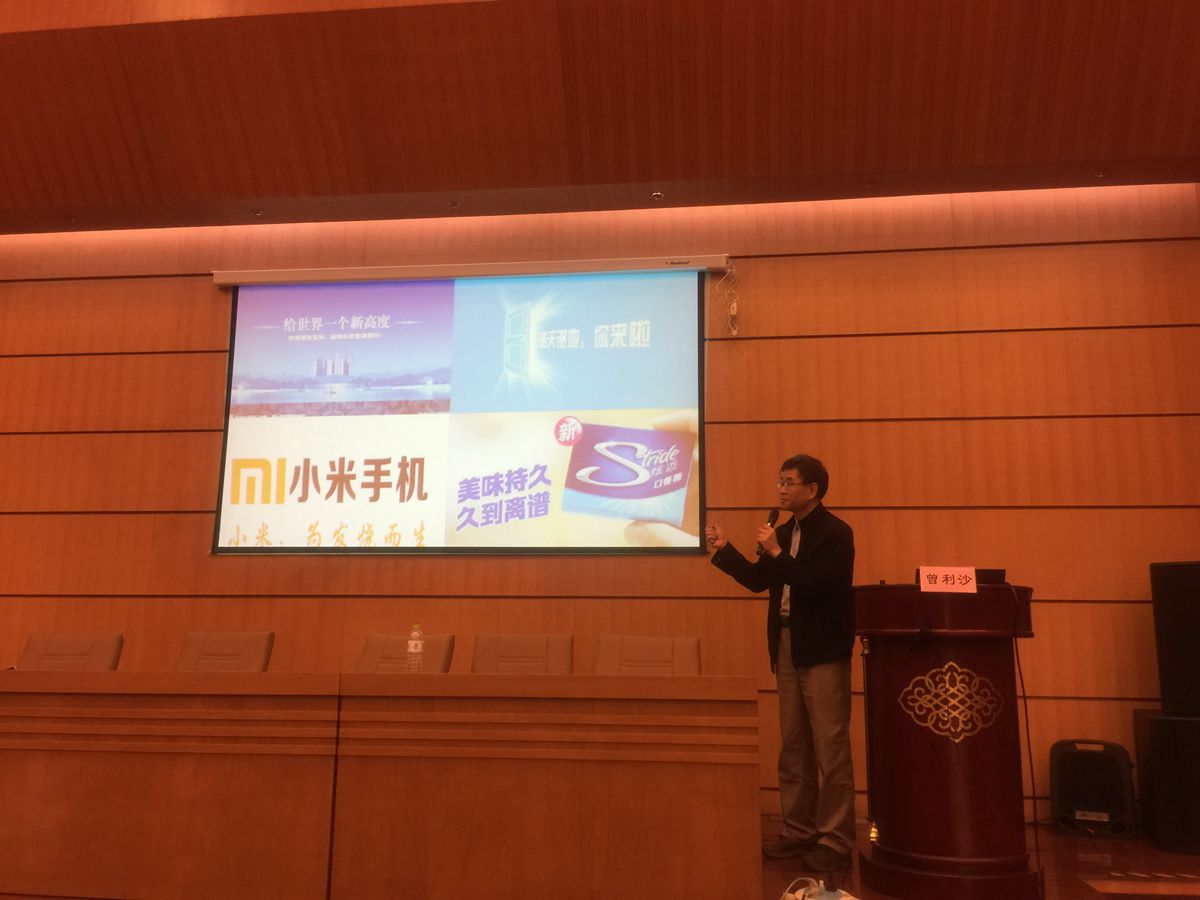 beat365官网曾利沙教授应邀出席会议并在大会作报告,发言题目是“论‘一带一路’倡议下我国企业图文广告语的创意与译创原则”。发言指出,习近平主席有关“一带一路”倡议已得到全球60多个国家的响应,迄今为止参与国双边贸易额突破1万亿美元,这给我国大中小企业的技术产品与服务走出去提供了巨大的潜在市场,而技术产品和服务的对外推广与传播必须依赖富于创意的广告“译创”。我国广告语翻译研究基本上集中于纯文本广告语的翻译,忽略了众多广告语原来所依附的互文性图像、图形、字形、版面设计的多种视觉美学传播效果。曾教授从一系列企业图文广告语的创意性译的典型案例入手,从宏-中-微观层次探讨了“一带一路”倡议下企业图文广告语传播的译创原则及其原则范畴体系建构,包括目的-需求论原则、价值论原则、策略论原则、辅助性准则、可操作性规则以及译创技法。为时30分钟的生动形象、富有创意的案例分析,以及实践与理论紧密结合的研究路向受到与会代表的高度好评。